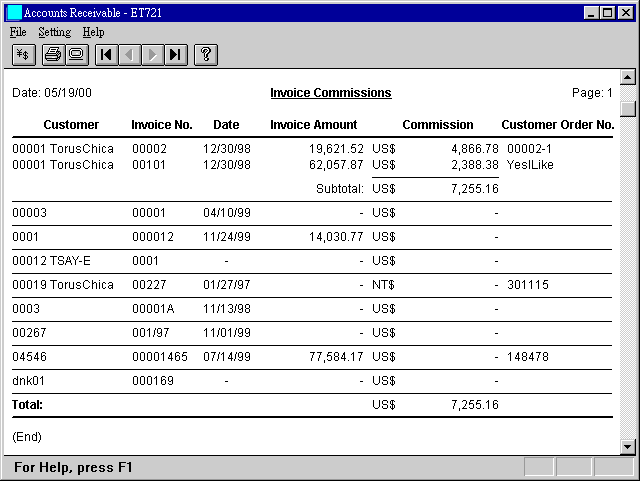 內也可以查詢該文件相關佣金數目. 現在, 在 Accounts Receivable 程式中,