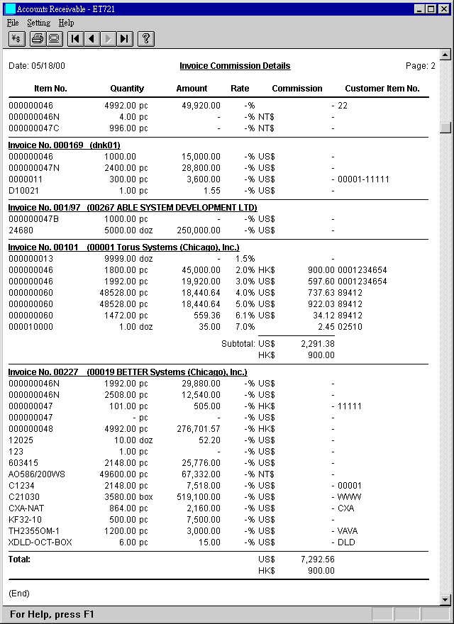 詳列每張 Invoice 上每個 item 的佣金.