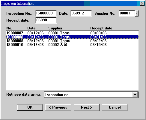 | Supplier No. | 每次驗貨只針對單一廠商. |