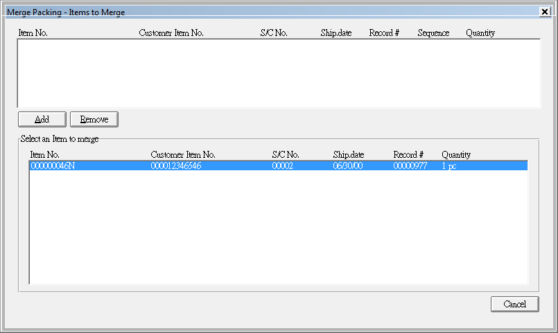 | Customer Order No. | 客戶訂單號碼. 若用 Get New 找出 S/C 欲出貨之 Item, 則系統會自動由 S/C 抓出此欄位資料. |